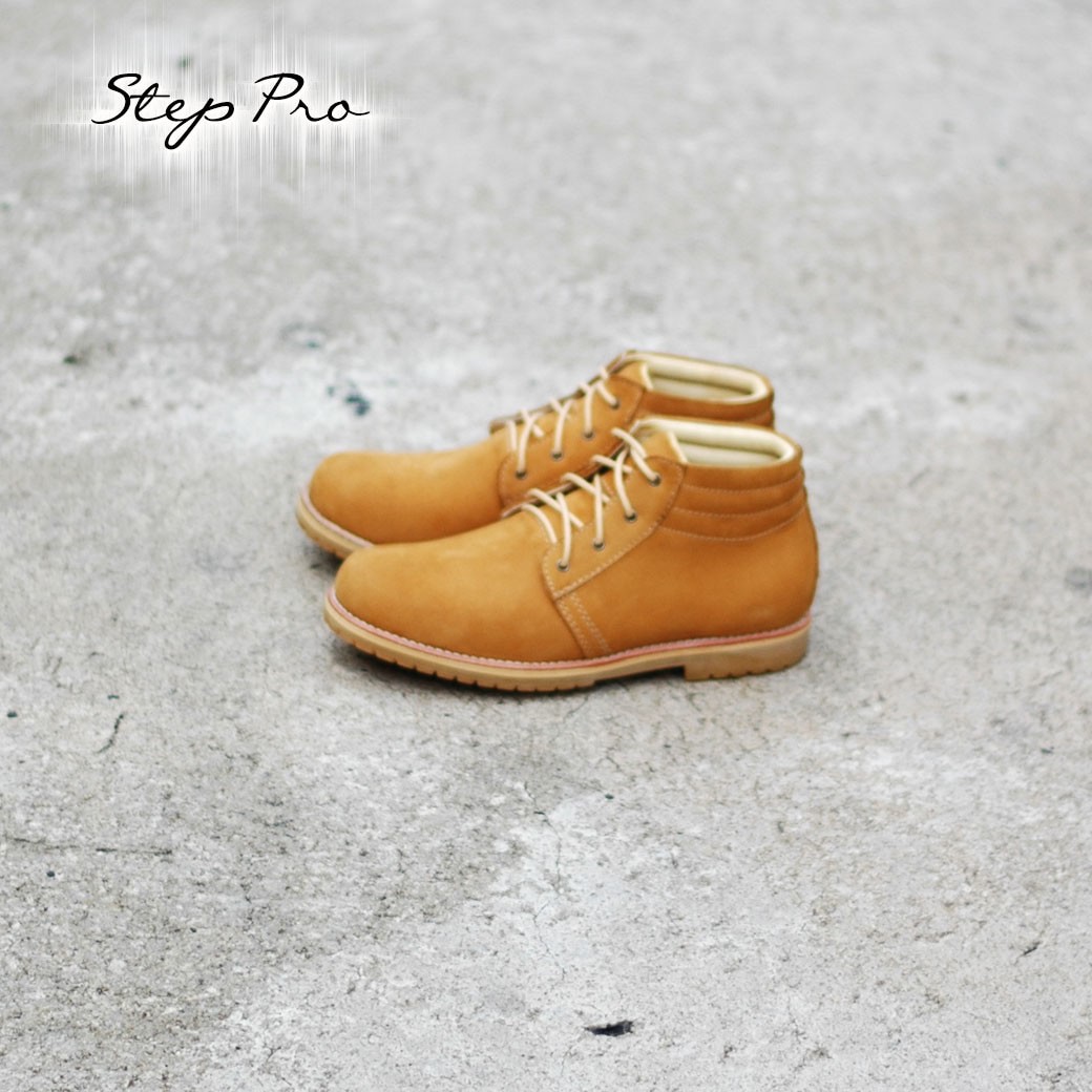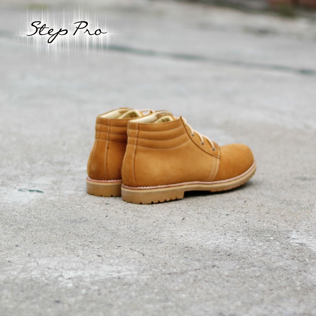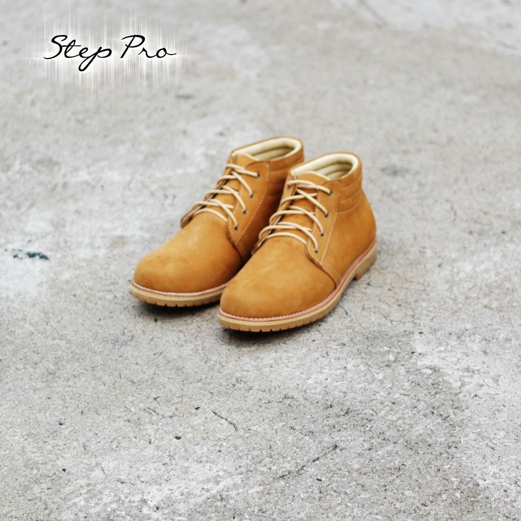 StepPro รองเท้าหนังวัวแท้ นูบัค ชนิดกันความชื้นและหิมะ หุ้มข้อ สีมัสตาร์ด Boots Code 914
